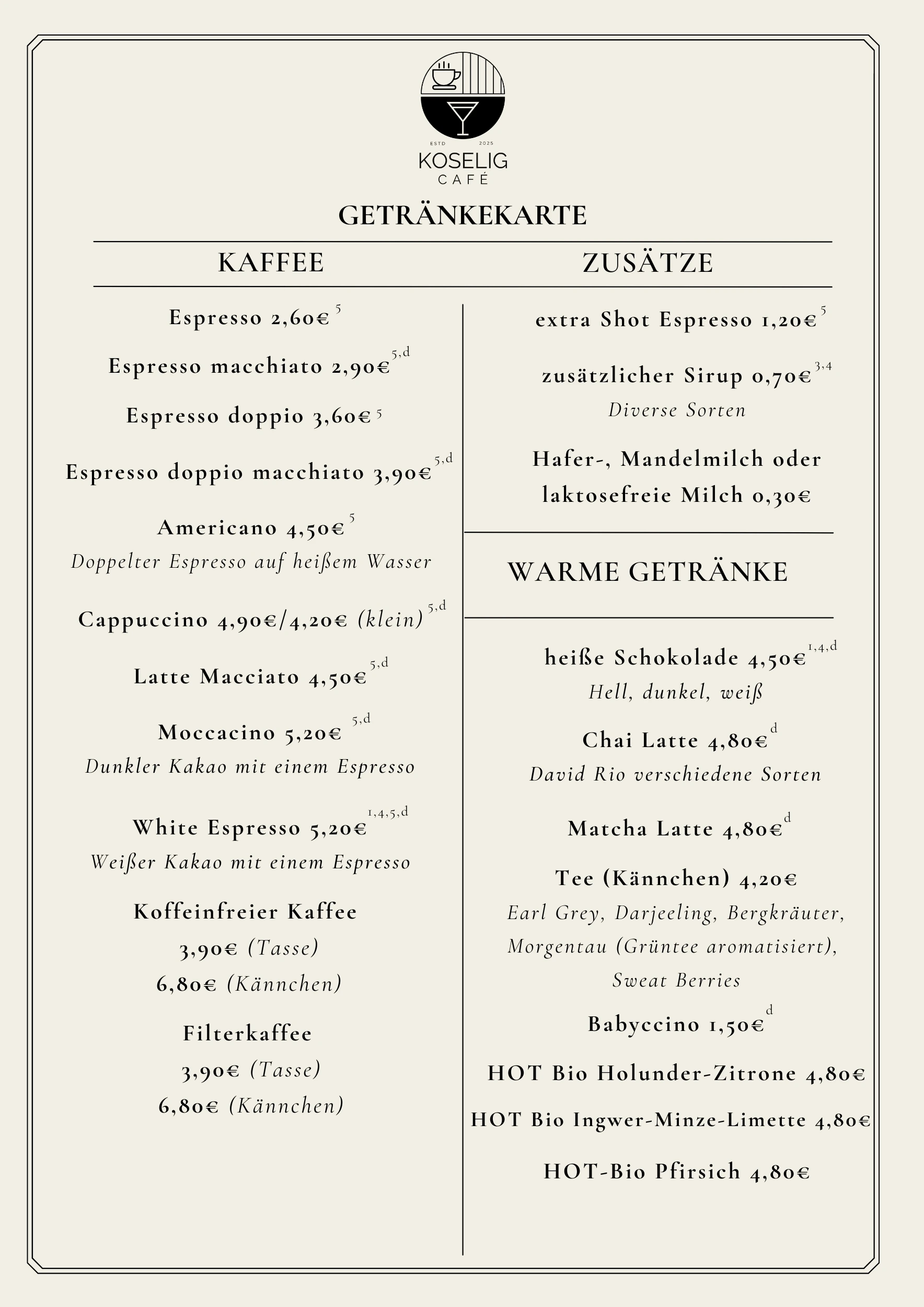 Welche Getränke kann ich im Café Koselig erwarten?2026-02-02T14:31:33+01:00