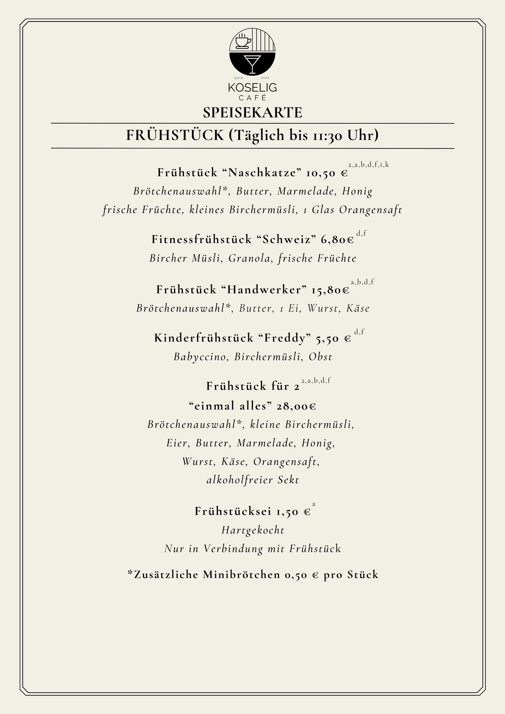 Unser Frühstück servieren wir täglich bis 11:30 Uhr.